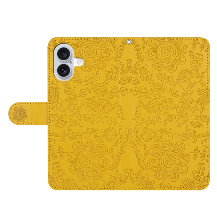 Funda de Cuero con Estampado Floral En Relieve para iPhone 16 Plus (Amarillo)