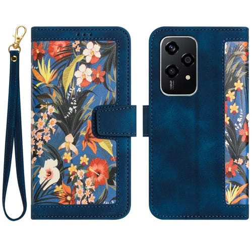 Funda de Cuero con Estampado Floral y Cordón para Honor 200 Lite (Azul Oscuro)