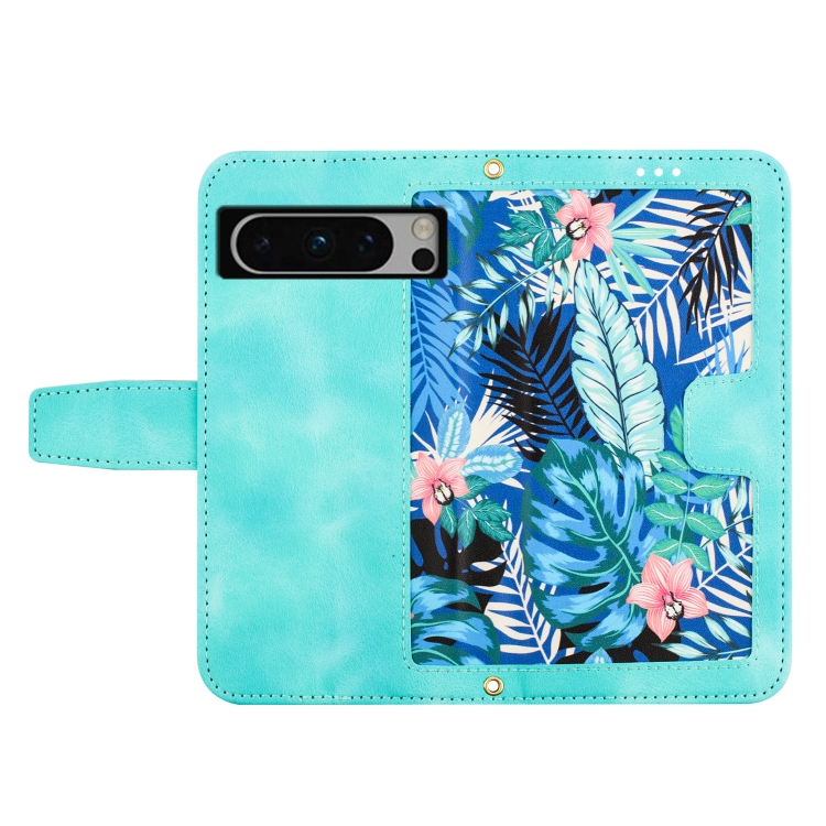 Funda de Cuero con Estampado Floral para Google Pixel 8 Pro con Cordón (Verde)