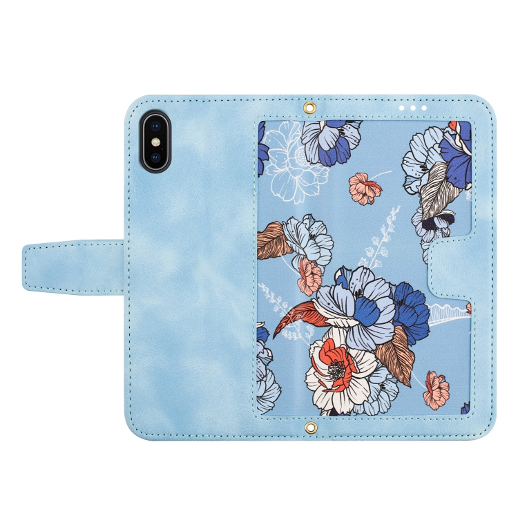 Funda de Cuero para iPhone Xs/X Estampado Floral y Cordón (Azul Claro)