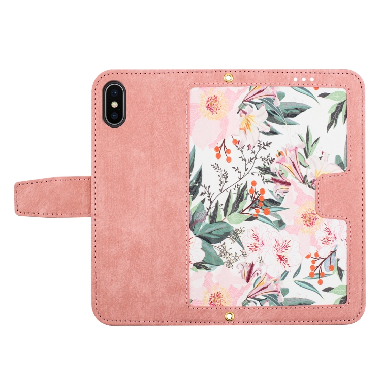 Funda de Cuero Estampado Floral con Cordón para iPhone Xs/X (Rosa)