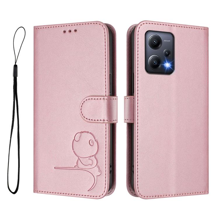 Funda de cuero con estampado RFID y cordón para Redmi Note 12 5G Global/India (rosa)