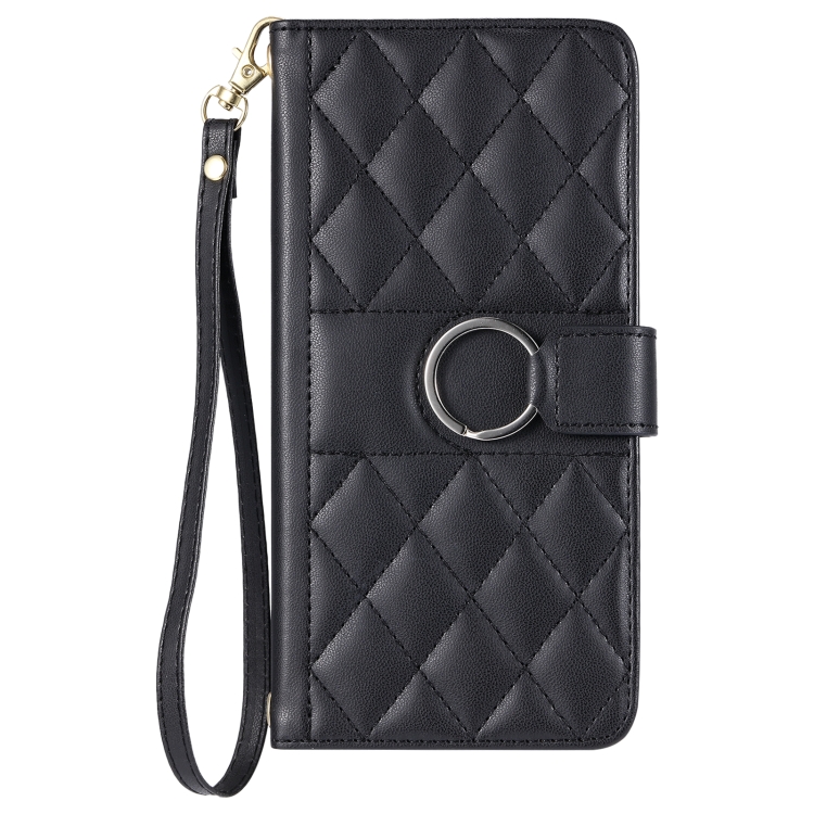 Funda de Cuero Samsung Galaxy A23 Forma de Rombo Hebilla de Anillo (Negro)