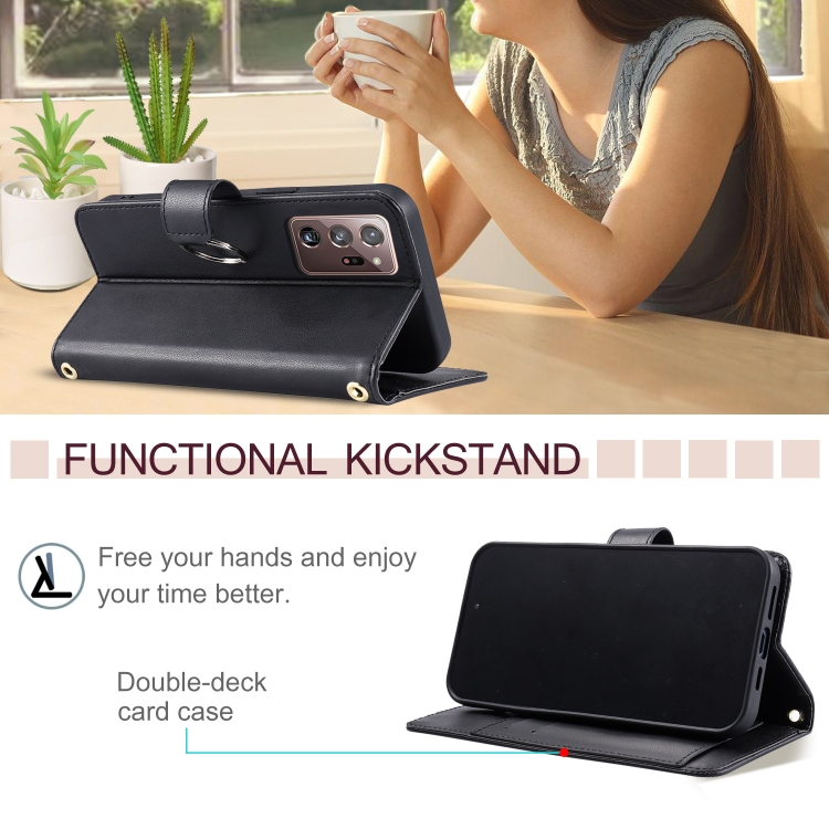 Funda de Cuero Samsung Galaxy Note20 Ultra Forma de Rombo Hebilla de Anillo (Negra)