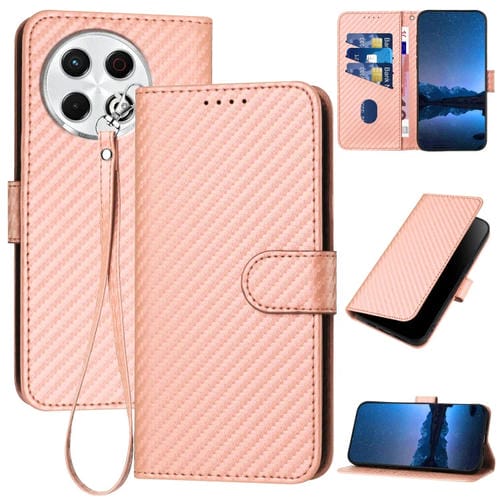 Funda de Cuero con Hebilla de Fibra de Carbono para Tecno Spark 30 Pro 4G Yx0070 con Cordón (Rosa)