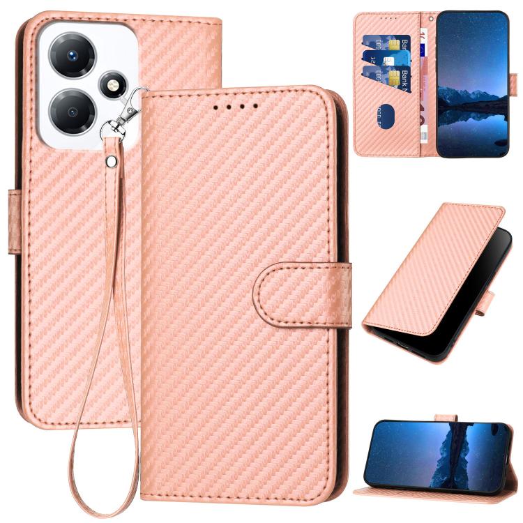 Funda de Cuero con Hebilla de Fibra de Carbono y Cordón para Infinix Hot 30 Play / Hot 30 Play Nfc Yx0070 (Rosa)