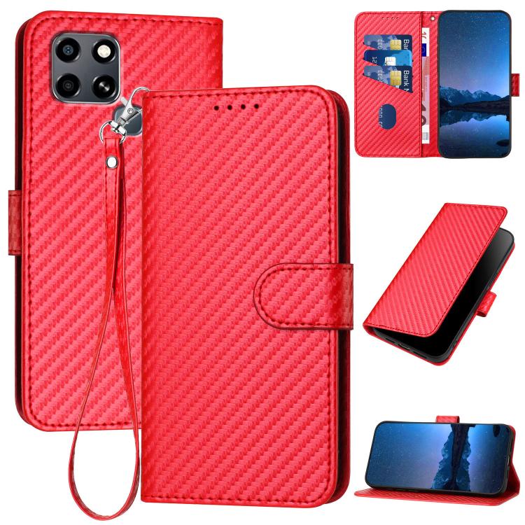 Funda de Cuero con Hebilla de Fibra de Carbono y Cordón para Infinix Smart 6 / Smart 6 HD Yx0070 (Rojo)