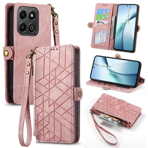 Funda de Cuero para Honor 200 con Hebilla Lateral y Cierre Geométrico Inteligente (Rosa)