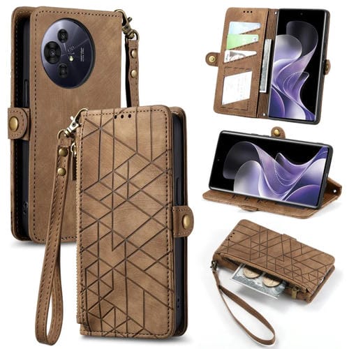Funda de Cuero Nxtpaper para TCL 50 Pro con Hebilla Lateral y Cremallera Geométrica (Marrón)