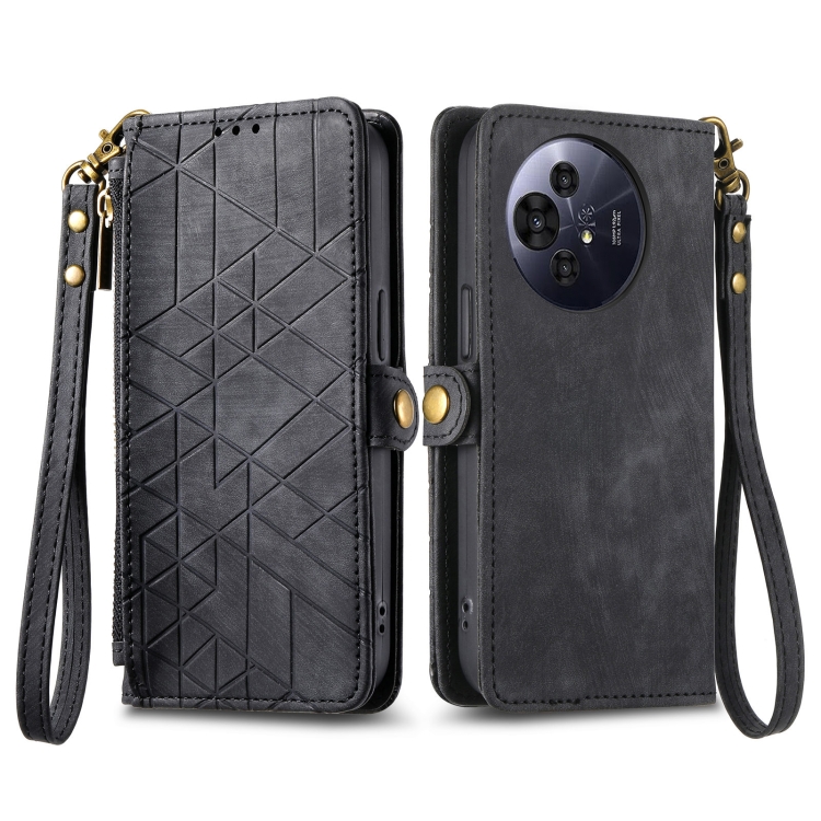 Funda de Cuero Nxtpaper para TCL 50 Pro con Hebilla Lateral y Cremallera Geométrica (Negro)