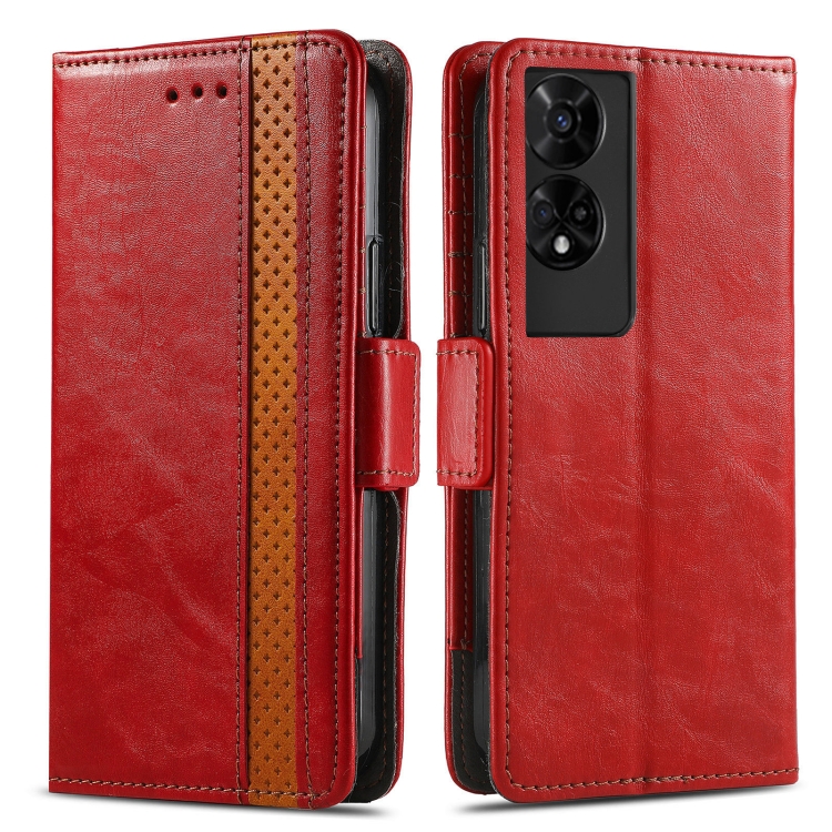 Funda de Cuero con Hebilla Magnética Doble para TCL 50 5G (Rojo)
