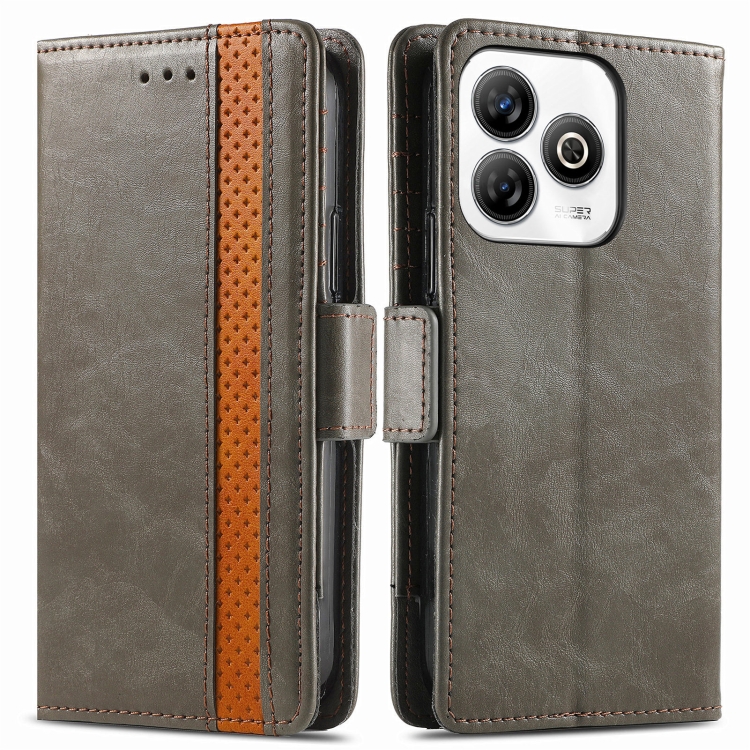 Funda de Cuero con Hebilla Magnética Doble para ZTE Blade A75 4G (Gris)