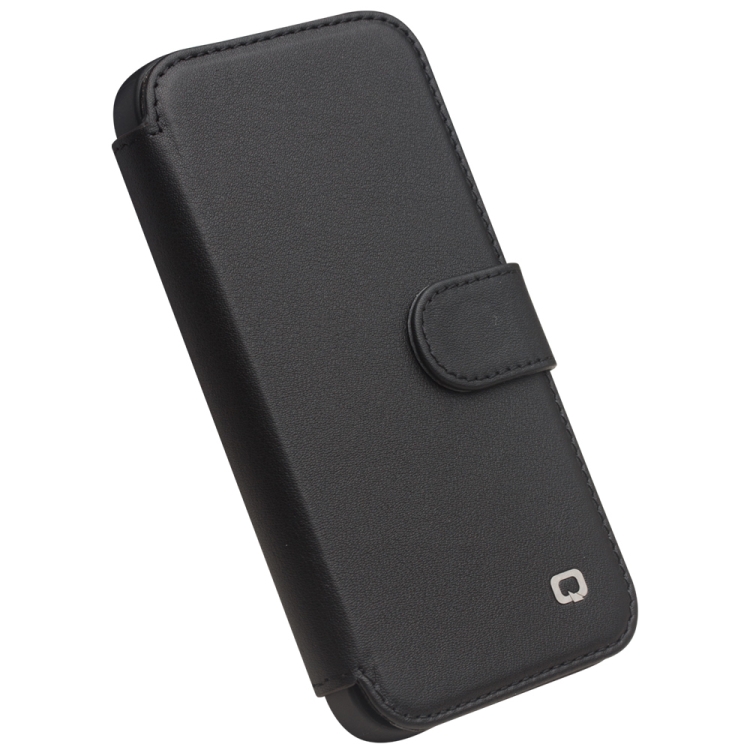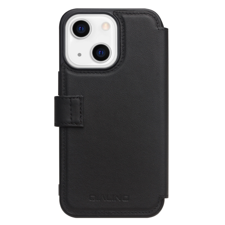 Funda de Cuero Qialino con Hebilla Magnética y Ranura para Tarjeta para iPhone 13 Mini (Negro)