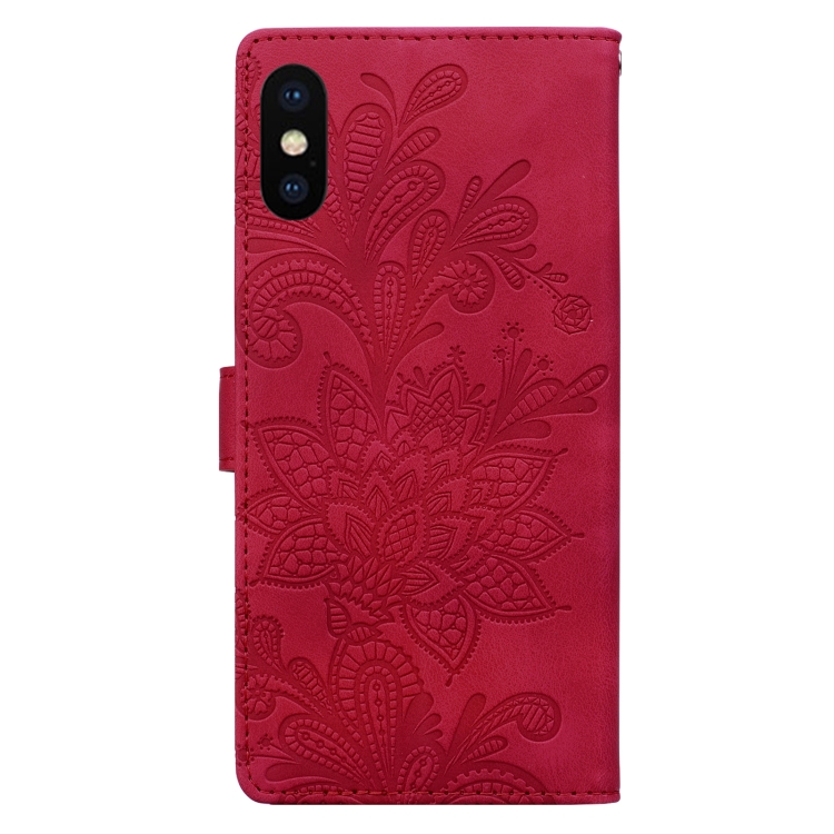 Funda de Cuero con Hebilla Magnética y Diseño Floral En Relieve para iPhone X/Xs (Rojo)