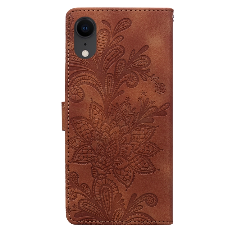 Funda de Cuero con Hebilla Magnética y Diseño Floral En Relieve para iPhone Xr (Marrón)