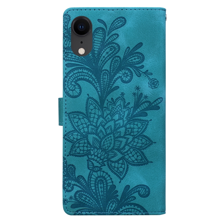 Funda de Cuero para iPhone Xr con Hebilla Magnética y Diseño Floral en Relieve (Verde)