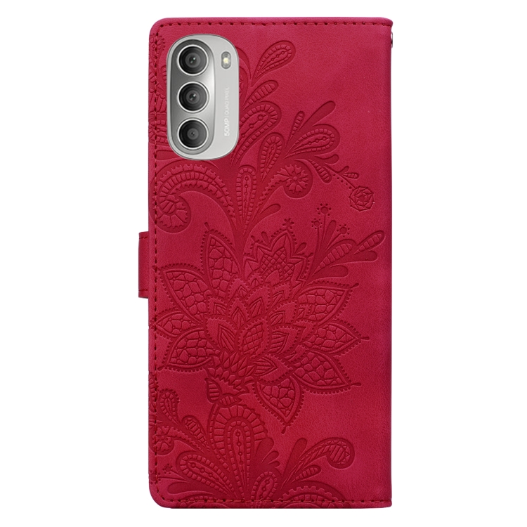 Funda de Cuero con Hebilla Magnética y Diseño Floral para Motorola Moto G51 5G (Rojo)