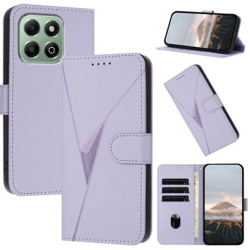 Funda de Cuero con Hebilla y Diseño de Triángulos para Honor X6A/X6B (Morado Claro)