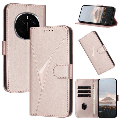 Funda de Cuero con Hebilla y Diseño Triángulos para Honor Magic7 Pro (Oro Rosa)