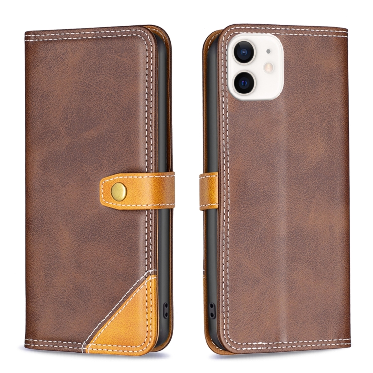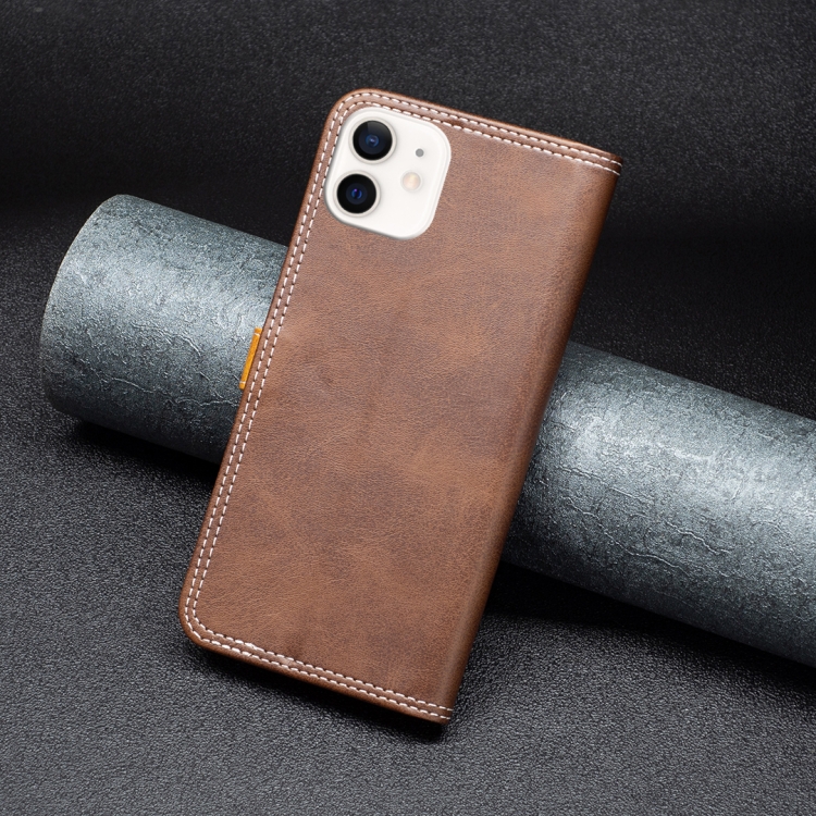 Funda de Cuero para iPhone 12 Mini con Hilo de Coser Doble a Juego (Marrón)