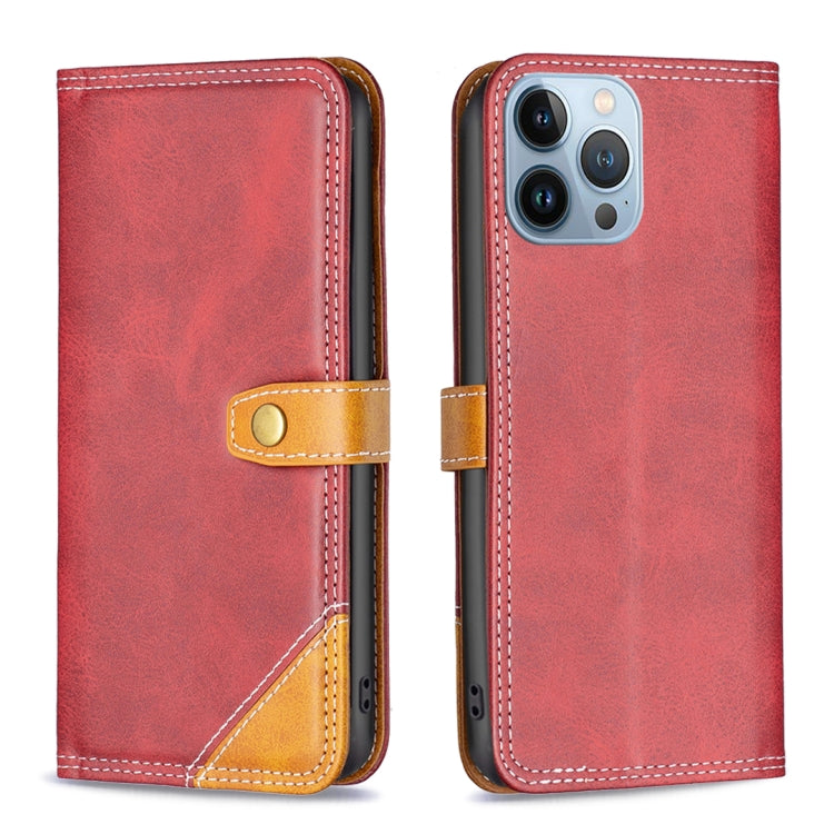 Funda de Cuero iPhone 13 Pro con Hilo de Coser Doble a Juego (Rojo)