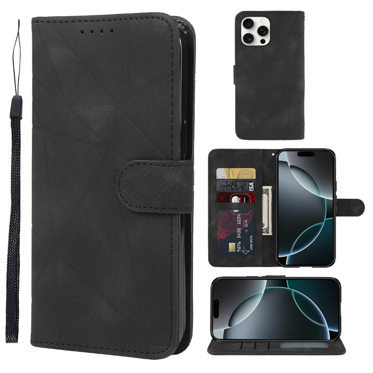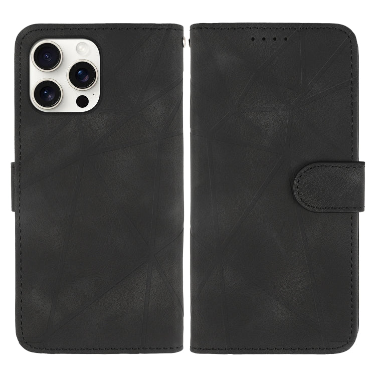 Funda de Cuero para iPhone 16 Pro Líneas Geométricas Tacto Sedoso (Negro)