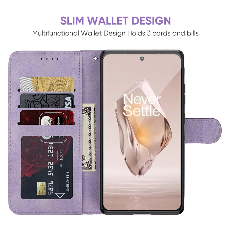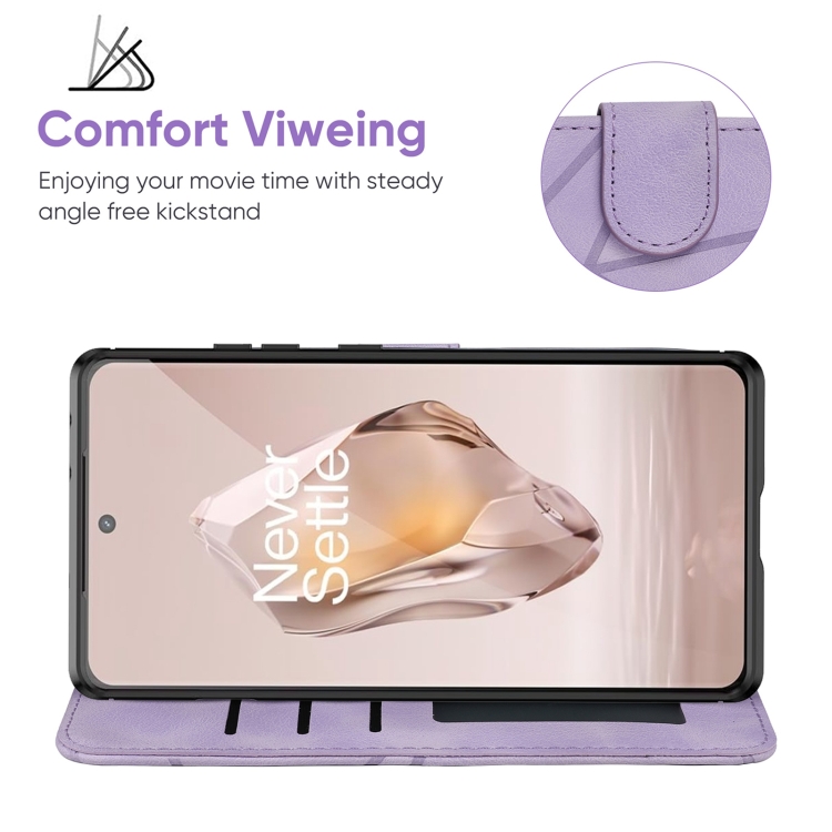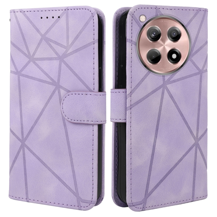 Funda de Cuero para OnePlus 12R/Ace 3 con Líneas Geométricas y Tacto Sedoso (Morado)