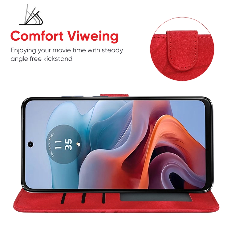 Funda de Cuero para Motorola Moto G34 con Líneas Geométricas y Tacto Suave (Rojo)