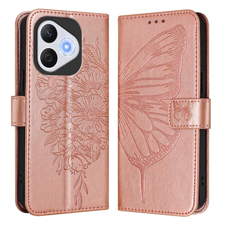 Funda de Cuero con Mariposa en Relieve para Honor 400 Lite (Oro Rosa)