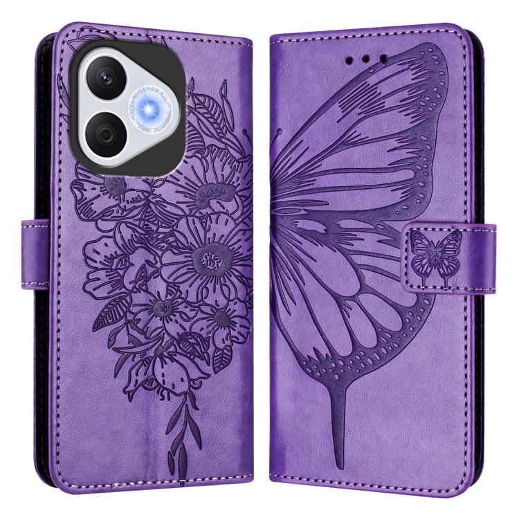 Funda de Cuero para Honor 400 Lite con Mariposas en Relieve (Morado)