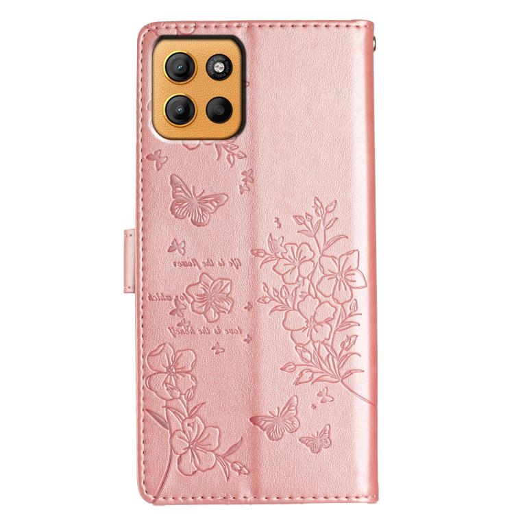 Funda de Cuero para Motorola Moto G15 con Mariposas y Flores (Oro Rosa)