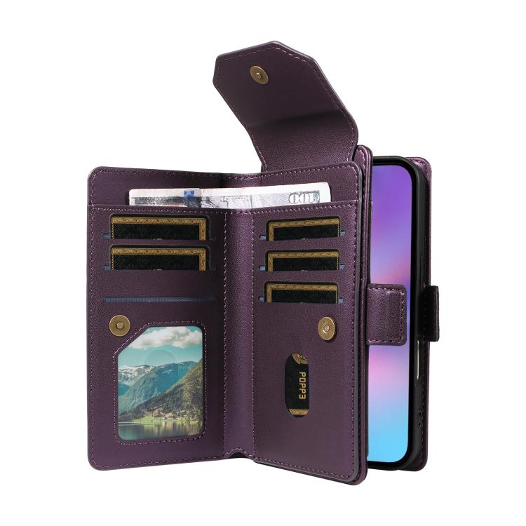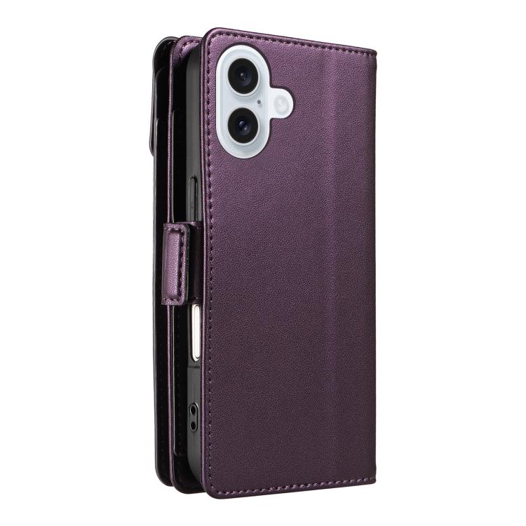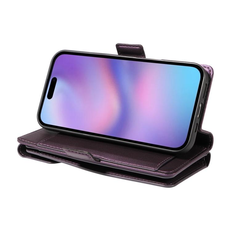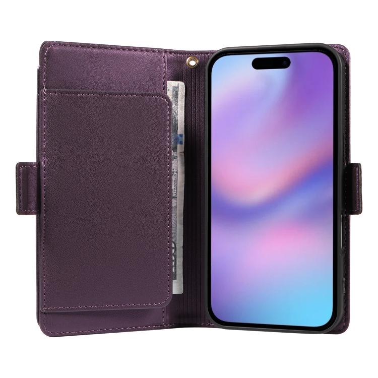 Funda de cuero con múltiples tarjetas y correa para iPhone 17 (morado)