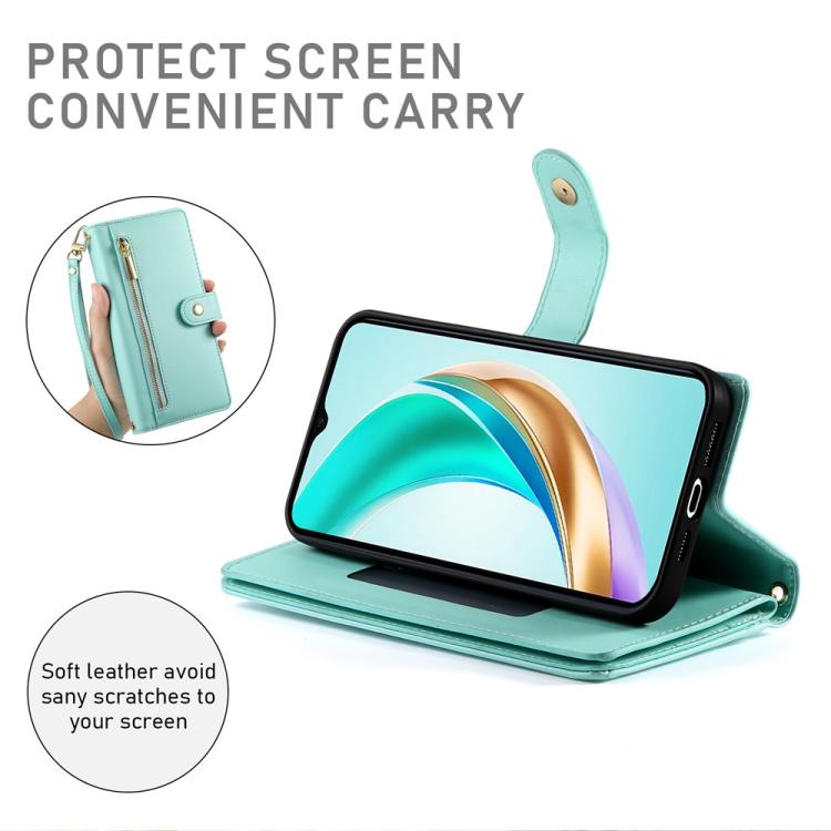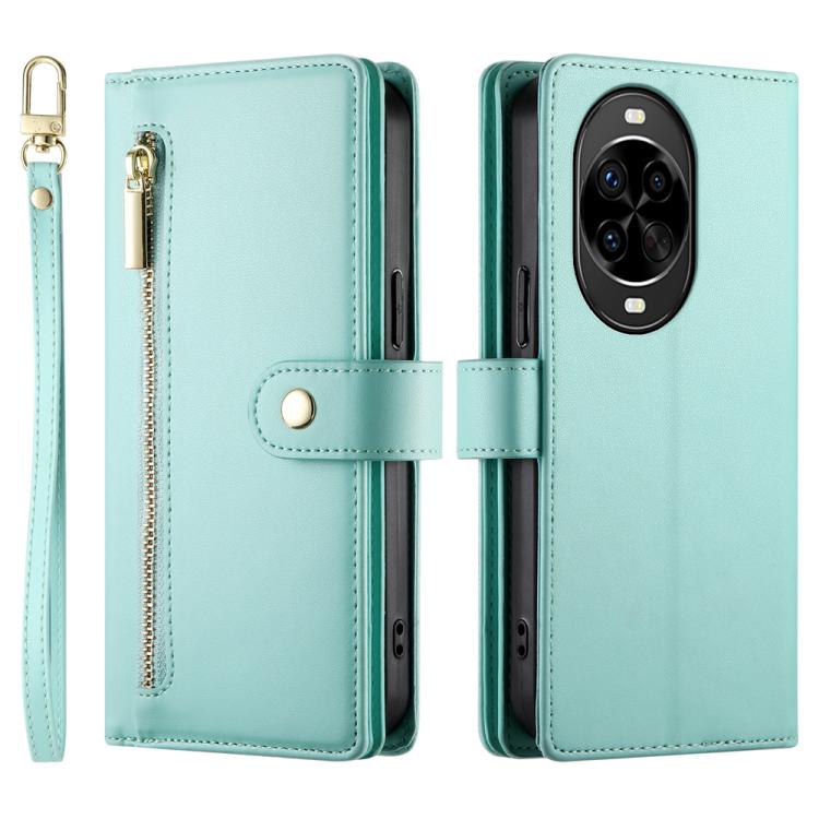 Funda de cuero con nueve ranuras para tarjetas y cremallera para Huawei nova 14 Pro (verde menta)