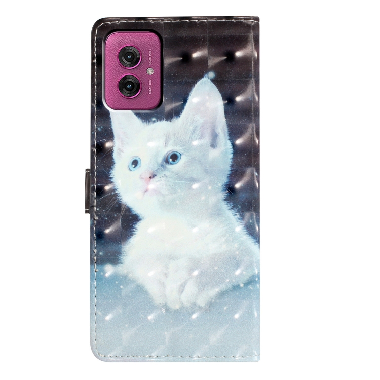 Funda de Cuero con Patrón 3D para Motorola Moto G55 (Gato Blanco)