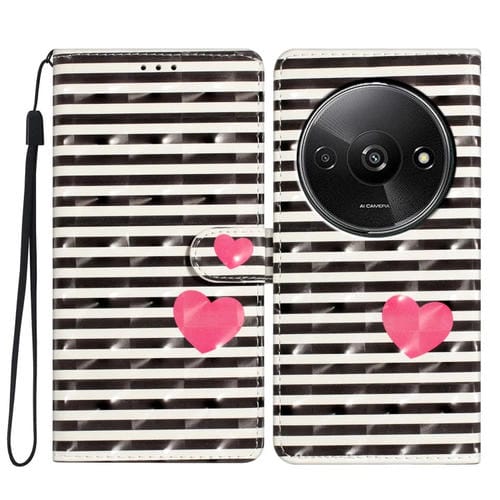 Funda de Cuero con Patrón 3D para Redmi A3 (Corazón Rayado)
