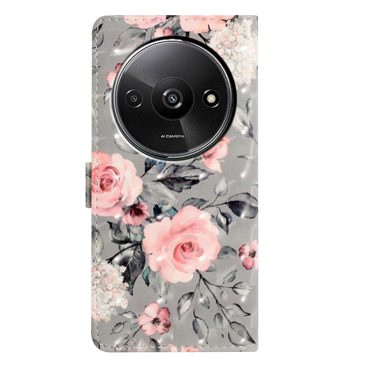 Funda de Cuero con Patrón 3D para Redmi A3 (Flor de Base Gris)