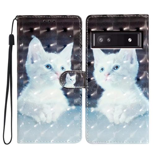 Funda de Cuero con Patrón 3D para Google Pixel 9A (Gato Blanco)