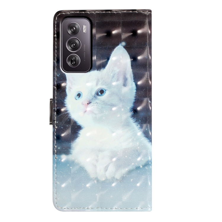 Funda de Cuero con Patrón 3D para Teléfono Oppo Reno12 Pro Global (Gato Blanco)