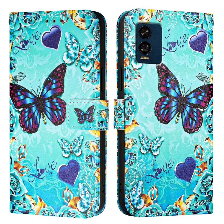 Funda de Cuero Blu View Speed 5G con Patrón de Dibujo Mariposa de Amor