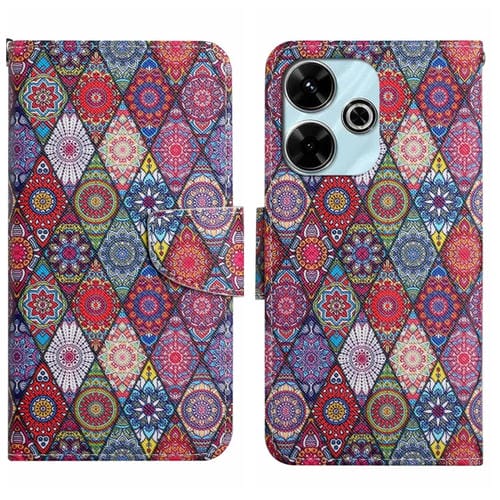 Funda de Cuero con Patrón de Dibujo de Colores para Xiaomi Redmi 13 4G (Caleidoscopio de Diamantes)