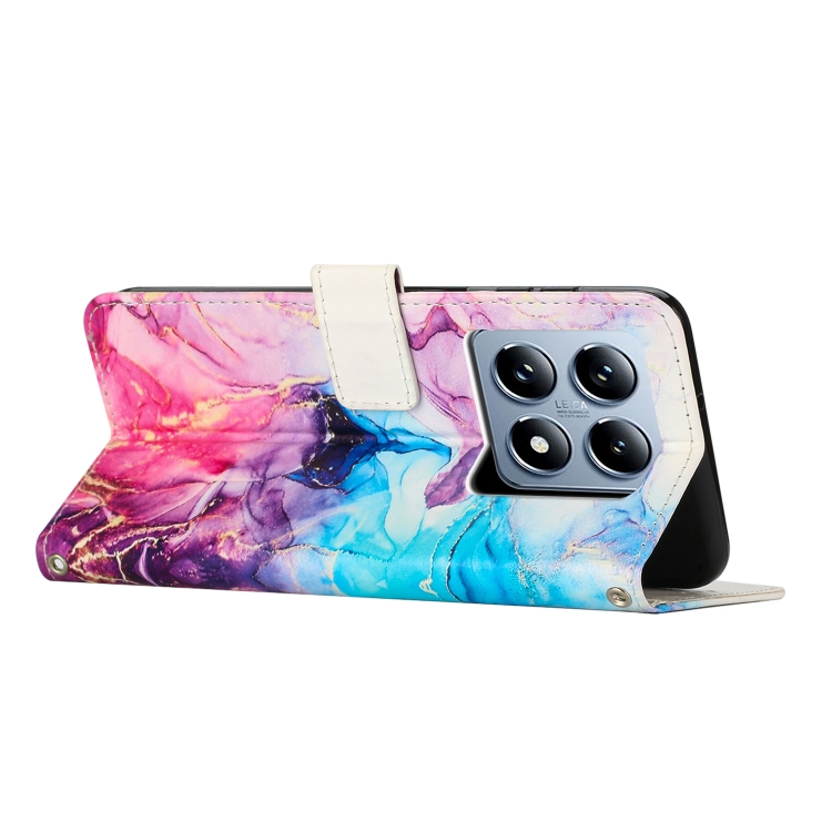 Funda de Cuero con Patrón de Mármol Pintado Global para Xiaomi 14T Pro 5G (Rosa y Morado)