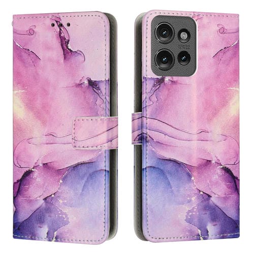 Funda de Cuero con Patrón de Mármol para Motorola Edge 50 Pro y Edge 50 (Morado)