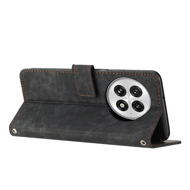Funda de Cuero con Patrón de Rayas y Tacto de Piel para OnePlus 13 con Cordón (Negro)