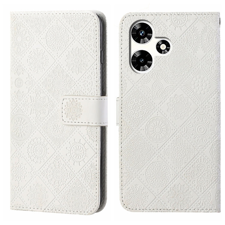 Funda de Cuero con Patrón en Relieve Estilo Étnico para Infinix Hot 30 4G (Blanca)