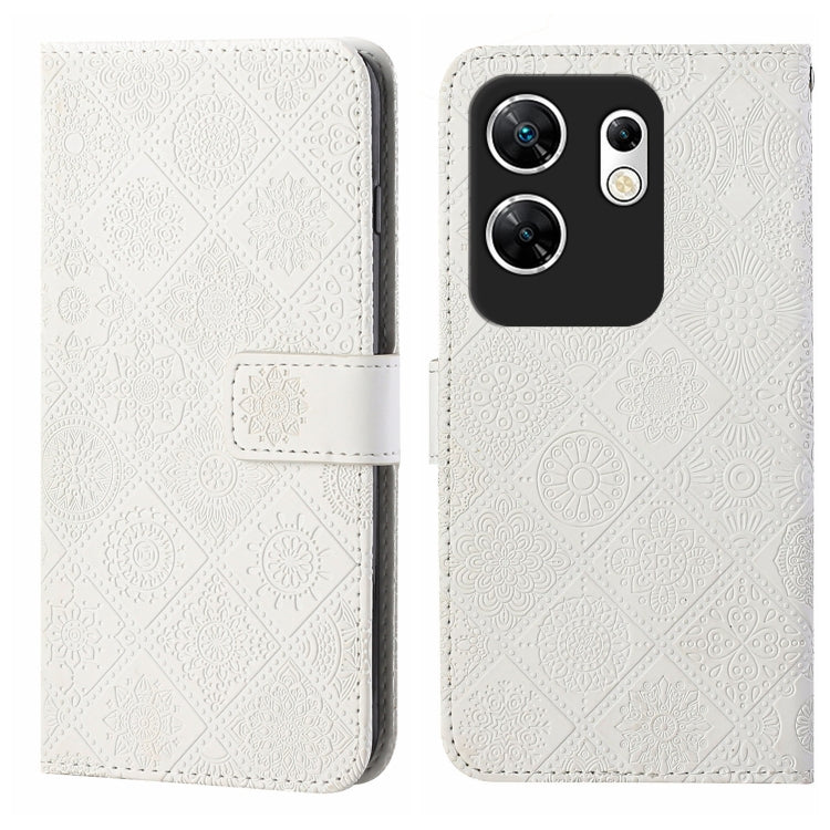 Funda de Cuero para Infinix Zero 30 4G con Patrón en Relieve Estilo Étnico (Blanca)