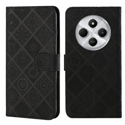 Funda de Cuero con Patrón En Relieve de Estilo Étnico para Redmi 14C 4G (Negro)