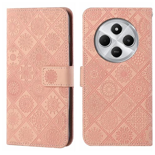 Funda de Cuero con Patrón En Relieve de Estilo Étnico para Redmi 14C 4G (Rosa)