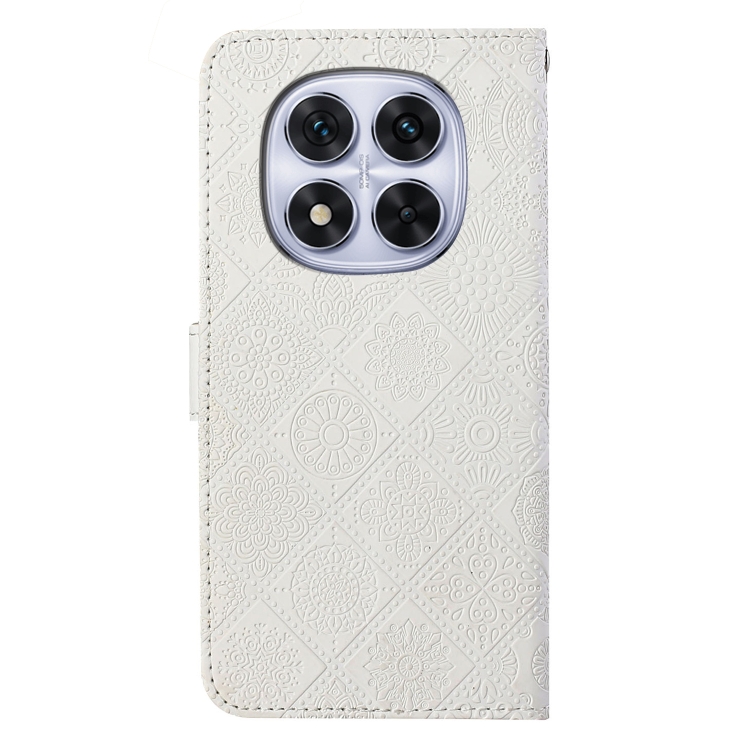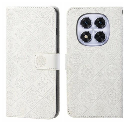 Funda de Cuero con Patrón En Relieve de Estilo Étnico para Redmi Note 14 Pro 5G (Blanca)