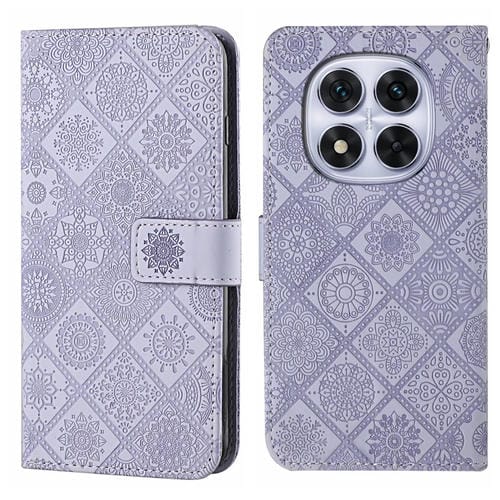 Funda de Cuero con Patrón En Relieve de Estilo Étnico para Redmi Note 14 Pro 5G (Morado)