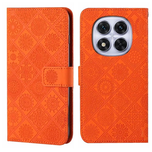 Funda de Cuero con Patrón En Relieve de Estilo Étnico para Redmi Note 14 Pro 5G (Naranja)
